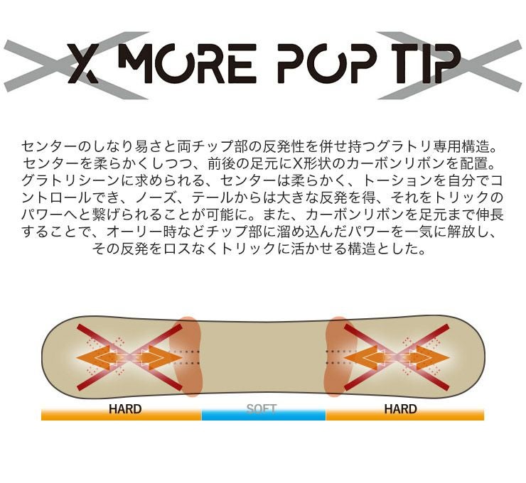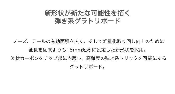 X状カーボンをチップ部に内蔵し、高難度の弾き系トリックを可能にするグラトリボード。