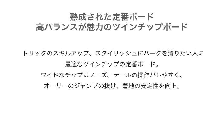 トリックのスキルアップ、スタイリッシュにパークを滑りたい人に最適なツインチップの定番ボード。