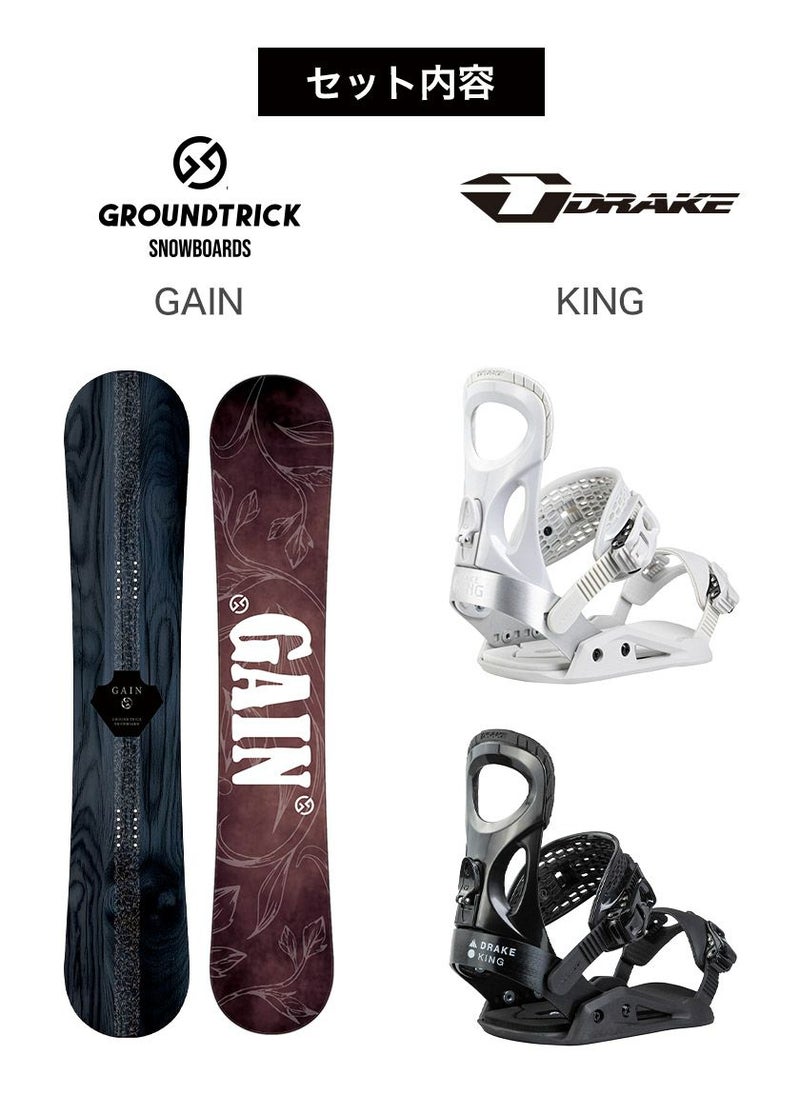 取付無料 GT Snowboards GAIN スノーボード & DRAKE ドレイク KING キング バインディング 2点セット 25-26 2026 メンズ ハードギア