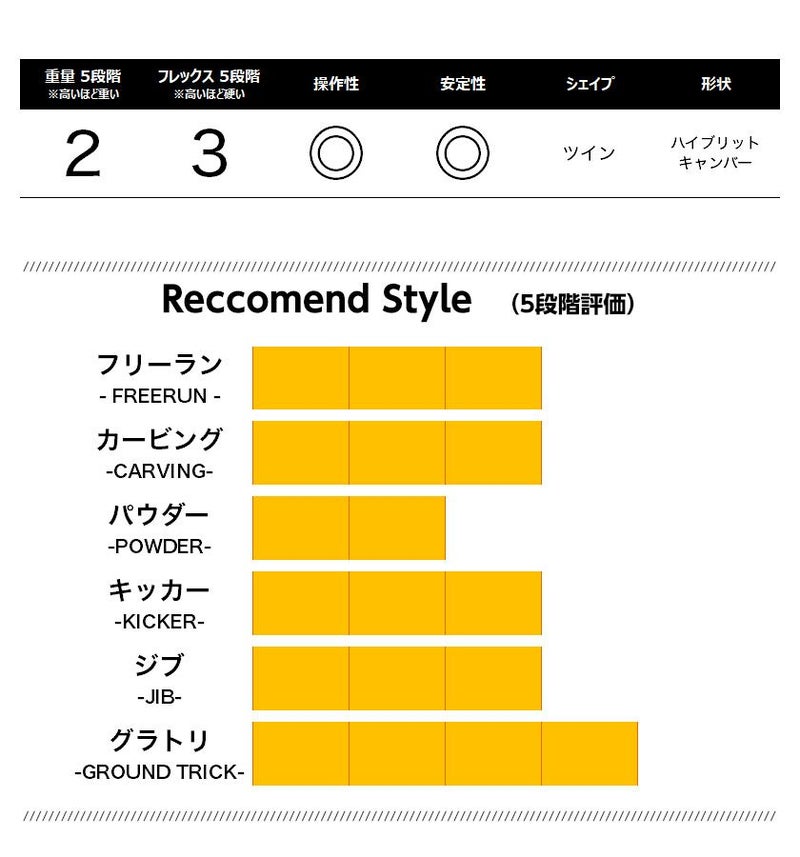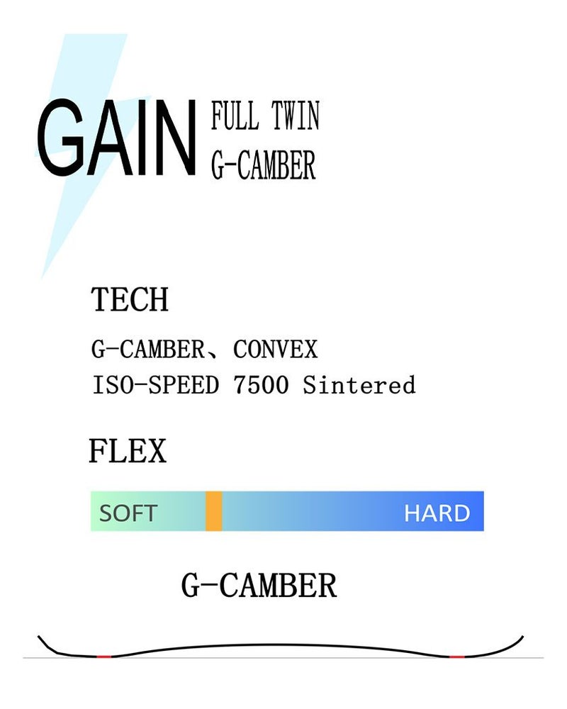 可変キャンバーのGAINはエントリ一層に向け、フレックスを追求し、トーション操作(捻れ)がし易く、軽量化され自由度が高いモデルとなっております。グラトリ入門者は是非乗ってもらいたい板になっております。