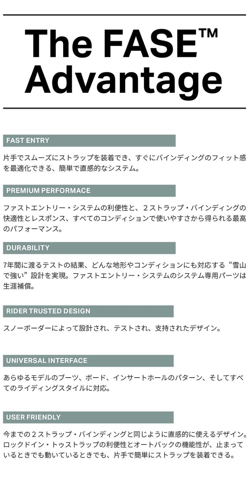 Katana AW FASE x Stale はスノーボーディング史上最も名高いバインディングの最新作。 Stale Sandbech と共にデザインされ、カーボンを注入したベースプレートを装備。 高いパフォーマンスとスーパー・アジャスタブルなKatana AWプラットフォームをベースに、FASE ファストエントリー・システムが搭載されることで、Katana の伝説的なパフォーマンスと軽量構造を最適化し、ストラップの着脱をこれまで以上に素早く簡単にする。