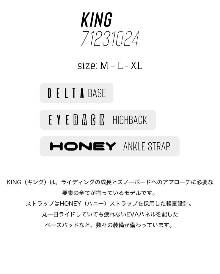 ライディングの成長とスノーボードへのアプローチに必要な要素の全てが揃っているモデルがこの KING。