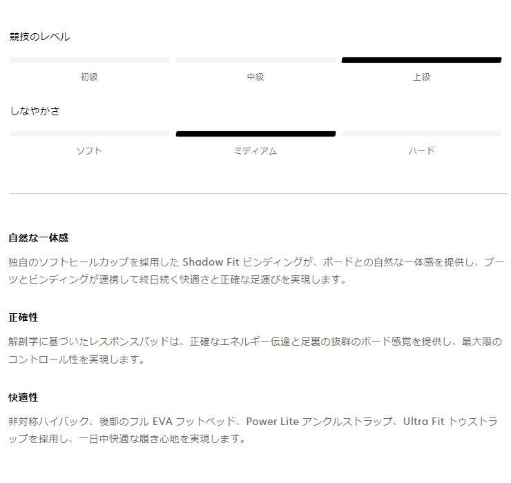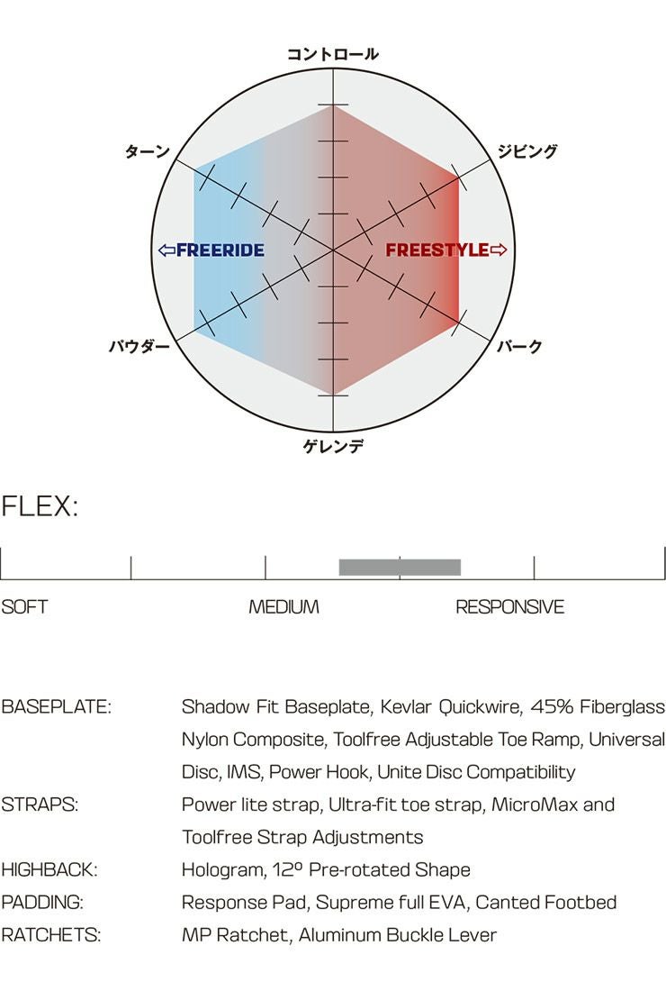 ShadowFitを採用したミッドフレックスのHologramは、レスポンスパッドとケブラークイックワイヤーによって、他の追随を許さない圧倒的に自然なボードとの一体感とダイレクトなエネルギー伝達による正確な操作性を提供します。