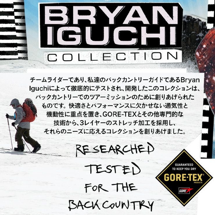 バックカントリーガイド、ブライアン井イグチによって開発され、徹底的にテストされた3Lストレッチゴアテックスジャケットは、アウターウェアが試される大きなミッションのために特別に作られています。