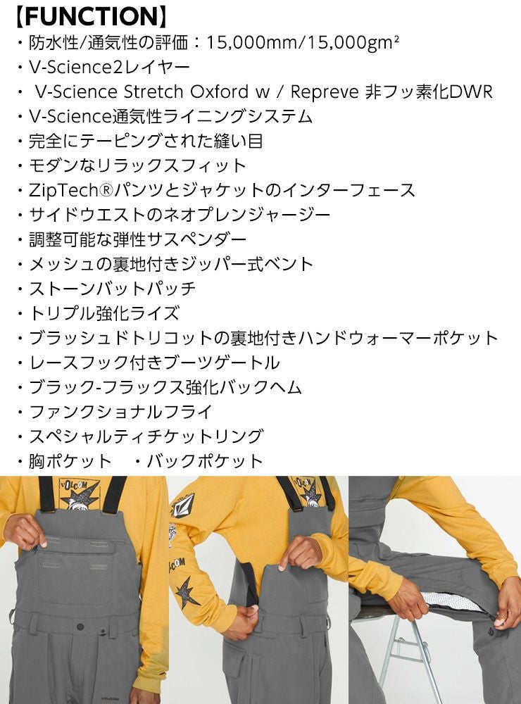 23-24 VOLCOM ボルコム ROAN BIB OVERALL オーバーオール パンツ スノボー スノーボード スキー ウェア 2024 大人ボードウェア