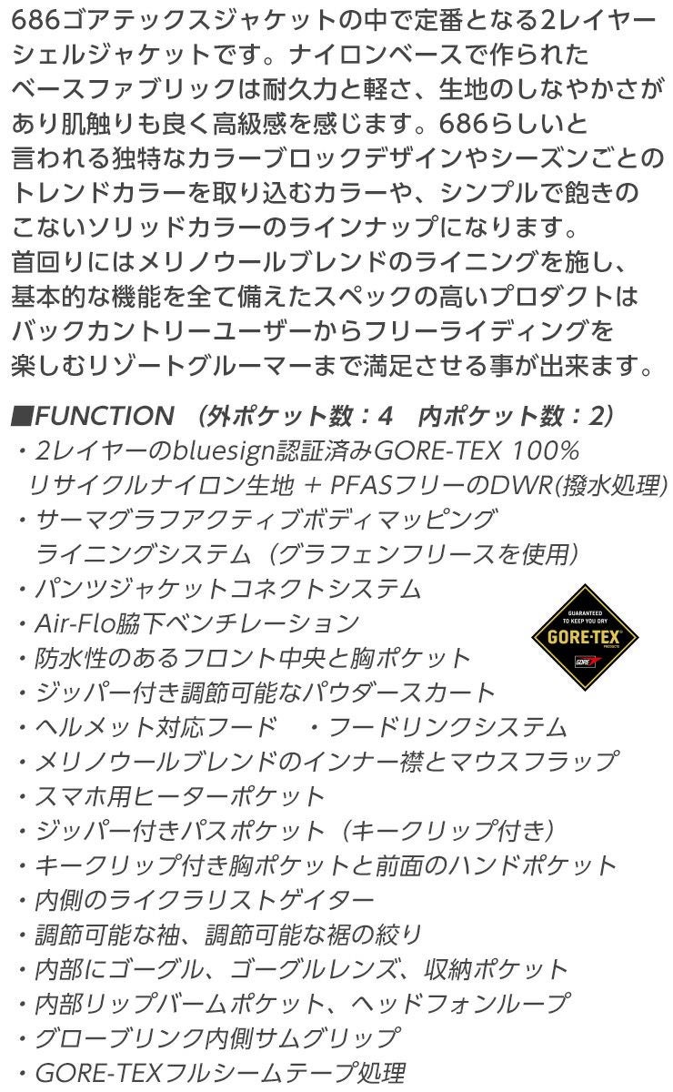 686ゴアテックスジャケットの中で定番となる2レイヤーシェルジャケットです。
