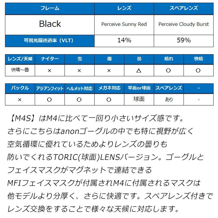 2026 anon アノン スノーボード ゴーグル M4S Toric Low Bridge カラー: Black レンズ: Perceive Sunny Red スキー マグネット式 磁石式
