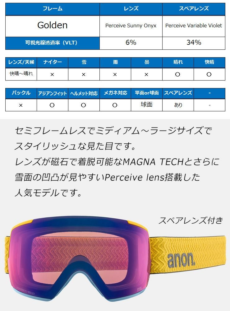 【超セール祭!!】2025 anon アノン スノーボード ゴーグル M5 Low Bridge カラー: Golden レンズ: Perceive Sunny Onyx スキー マグネット式 【acc-cp-09】