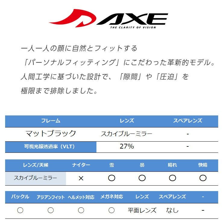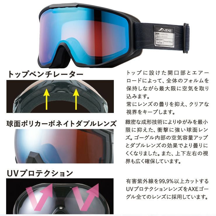 AXE アックス スノーボード ゴーグル スキー AX800-WCM カラー:マットブラック レンズ:スカイブルーミラー スキーゴーグル