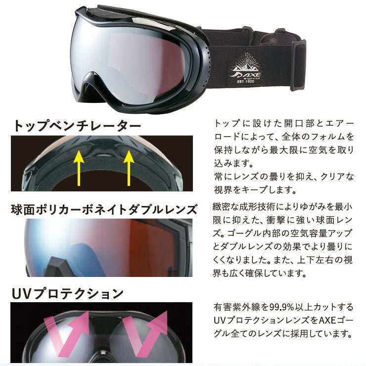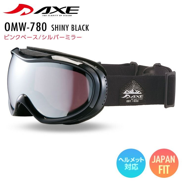 AXE アックス スノーボード ゴーグル スキー OMW-780 シャイニーブラック レンズ:ピンクベース/シルバーミラー