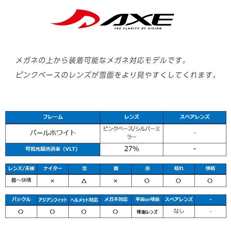AXE アックス スノーボード ゴーグル スキー OMW-780 パールホワイト レンズ:ピンクベース/シルバーミラー