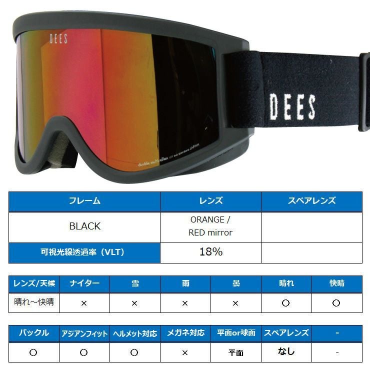 スノーボード ゴーグル DEES ディーズ BULLET バレット Mat GRAY レンズ:ORANGE / RED mirror スキー お買い得 スノボー DBG-2351 【acc-cp-09】