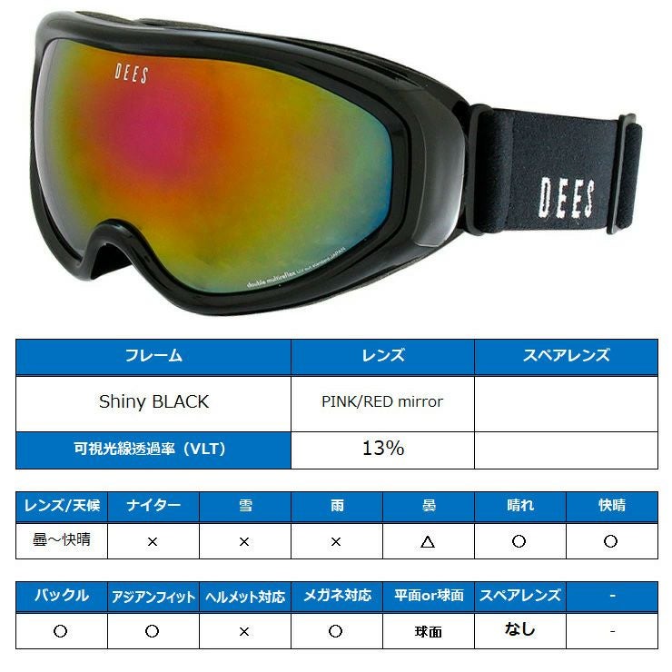 スノーボード ゴーグル DEES ディーズ WISE ワイズ Shiny BLACK レンズ:PINK / RED mirror スキー お買い得 スノボー DBG-146 【acc-cp-09】