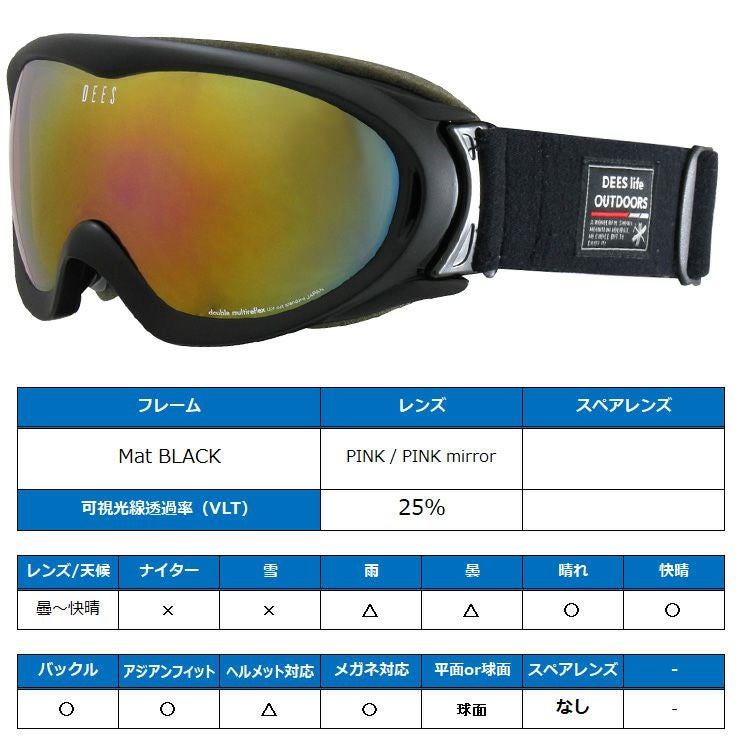 スノーボード ゴーグル DEES ディーズ LIP リップ Mat BLACK レンズ:PINK / PINK mirror スキー お買い得 スノボー