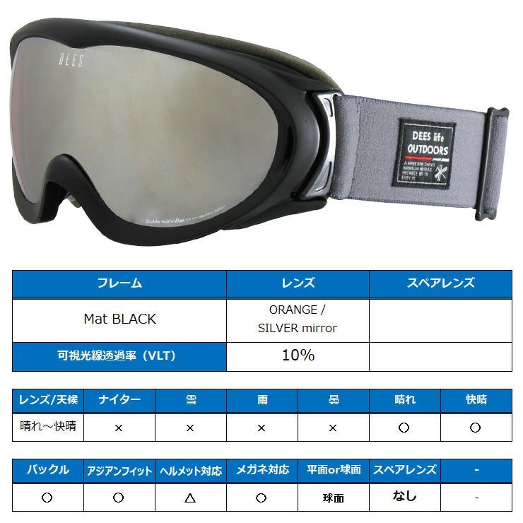 スノーボード ゴーグル DEES ディーズ LIP リップ Mat BLACK レンズ:ORANGE / SILVER mirror スキー お買い得 スノボー【acc-cp-09】