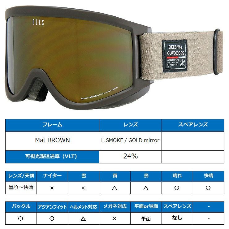 スノーボード ゴーグル DEES ディーズ PALETTE パレット DBG-2462-2 Mat BROWN レンズ:L.SMOKE / GOLD mirror スキー スノボー【acc-cp-09】