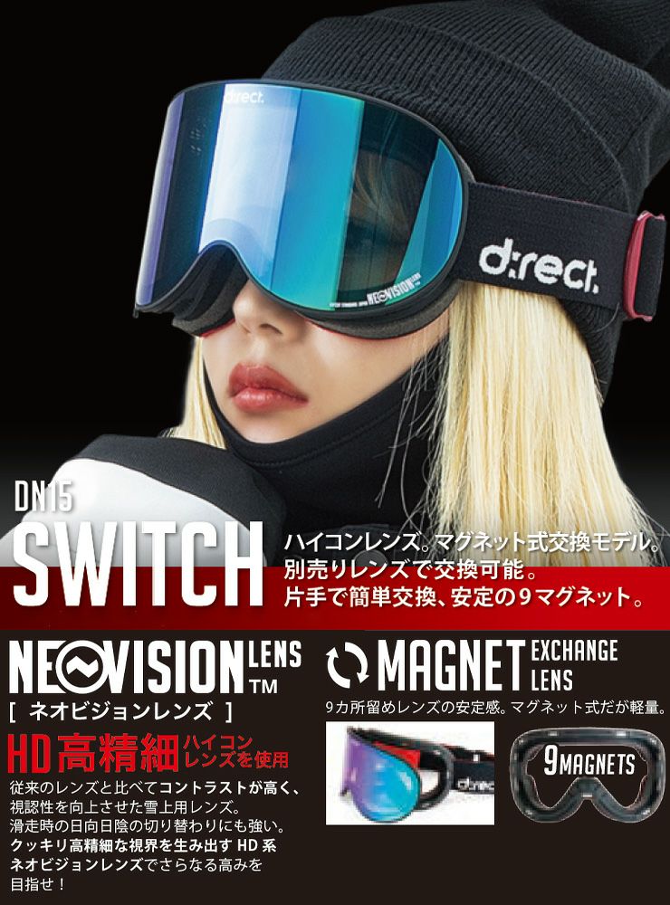 D:RECT ディレクト スノーボード ゴーグル SWITCH カラー:Mat BLACK レンズ:NEOVISON HD ROSE GOLD Revo mirror 平面