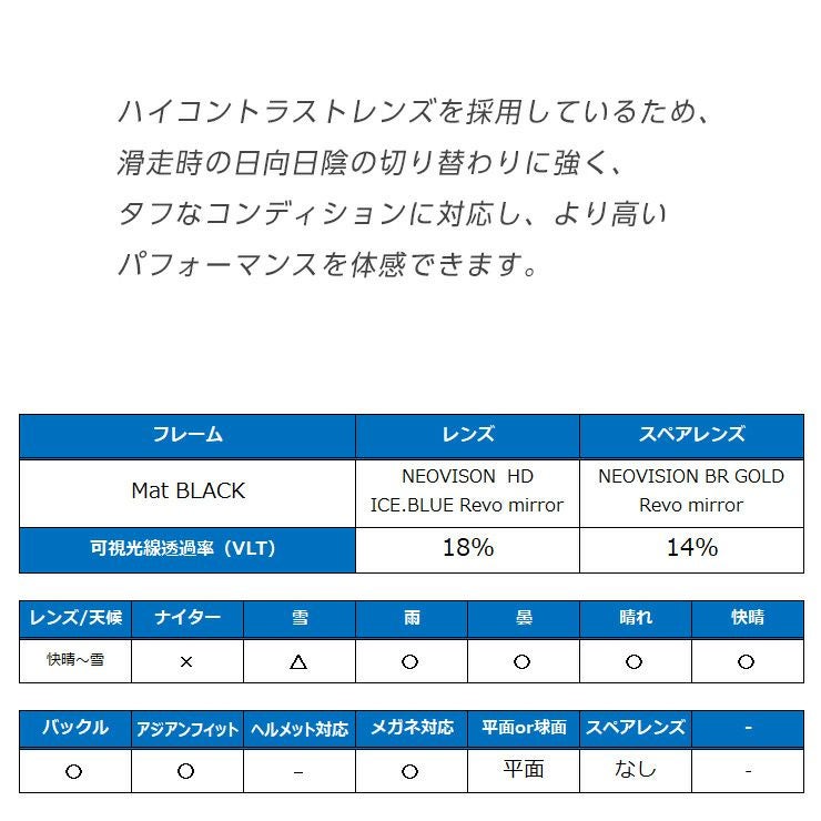 D:RECT ディレクト スノーボード ゴーグル ボーナスレンズ付き SWITCH カラー:Mat BLACK レンズ:NEOVISON HD ICE.BLUE Revo mirror 平面 【acc-cp-09】