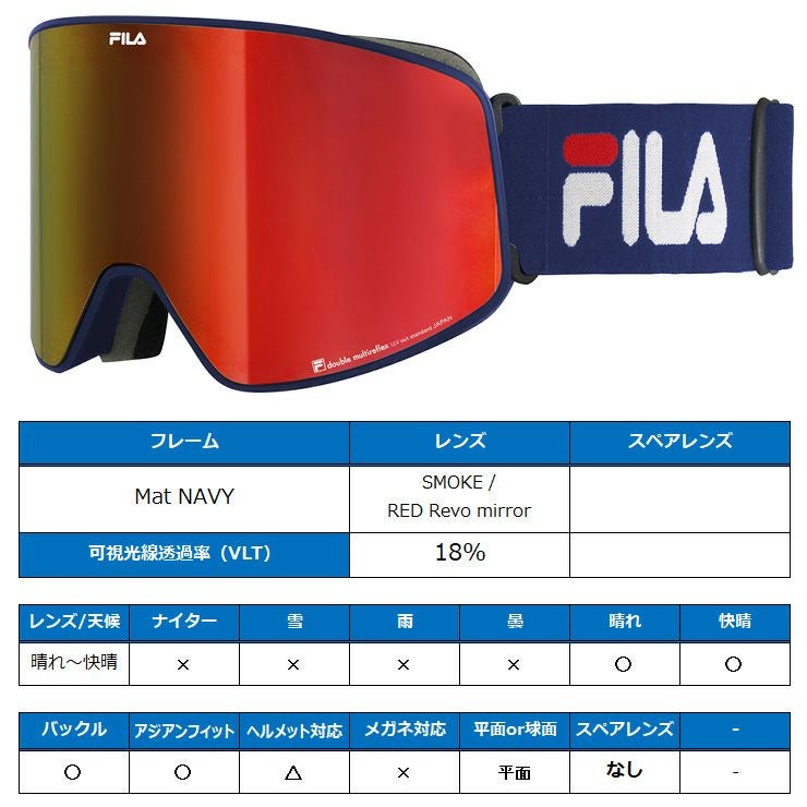 FILA フィラ スノーボード ゴーグル FG1701J-1 [Mat NAVY] SMOKE / RED Revo mirror ゴーグル 平面 スキー ゴーグル【acc-cp-09】