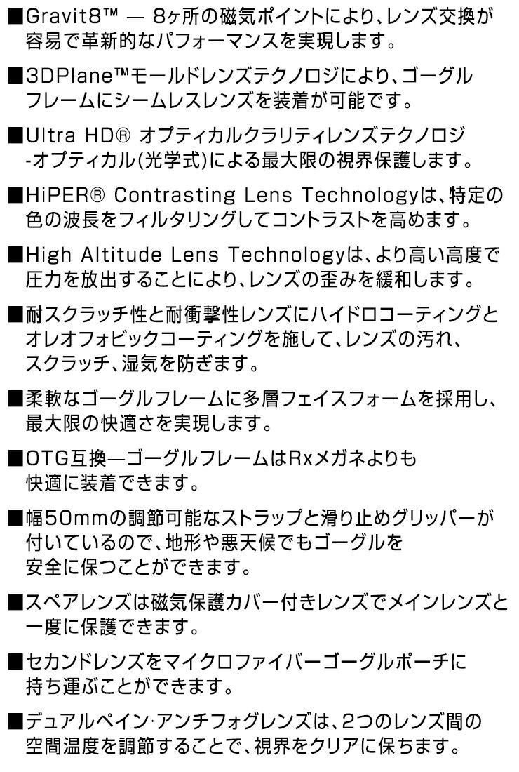 100%ゴーグルのハイエンドモデルNorg(ノルグ)は、Gravit8マグネットシステムを活用して瞬時にレンズ交換が可能です。
