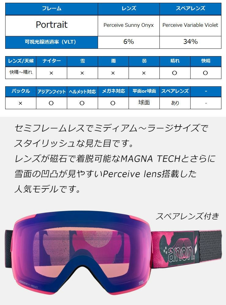 他の画像を見る 24-25 BURTON バートン 正規品 アジアンフィット 2025 anon アノン スノーボード ゴーグル M5S Low Bridge カラー: Purple レンズ: Perceive Sunny Bronze スキー マグネット式 通常販売価格 ¥ 46,200 のところ WEB価格 ¥ 32,340 税込 会員特別価格 ¥ 30,723 税込 在庫切れ 詳細を見る お気に入りに登録する