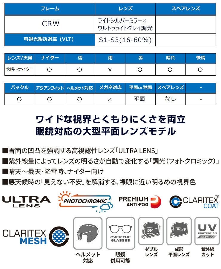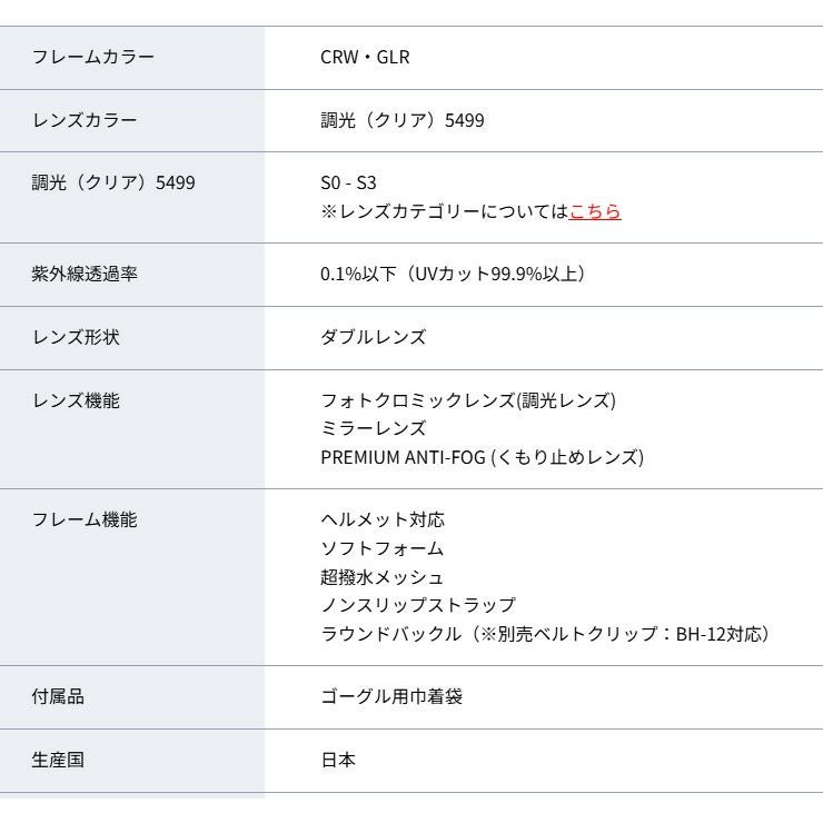 他の画像を見る 25-26 調光レンズ アジアンフィット 2026 SWANS スワンズ OUTBACK アウトバック スノーボード ゴーグル フレーム:CRW レンズ:ライトシルバーミラー×ウルトラライトグレイ調光 スキー 通常販売価格 ¥ 36,300 のところ WEB価格 ¥ 30,800 税込 会員特別価格 ¥ 29,260 税込 在庫切れ 詳細を見る お気に入りに登録する