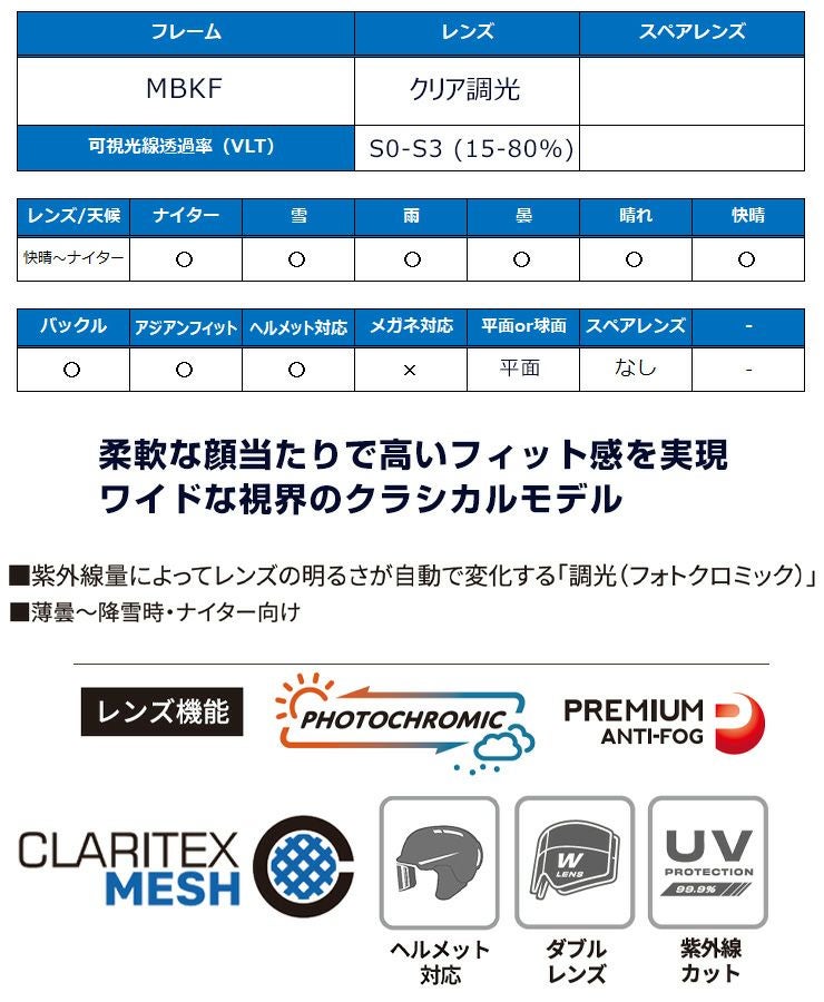 他の画像を見る 25-26 調光レンズ アジアンフィット 2026 SWANS スワンズ OUTBACK アウトバック スノーボード ゴーグル フレーム:MBKF レンズ:ライトシルバーミラー×ウルトラライトグレイ調光 スキー 通常販売価格 ¥ 36,300 のところ WEB価格 ¥ 30,800 税込 会員特別価格 ¥ 29,260 税込 在庫切れ 詳細を見る お気に入りに登録する
