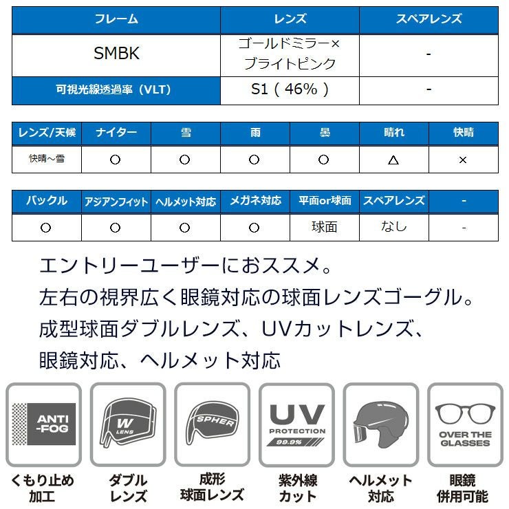 他の画像を見る 25-26 ヘルメット対応 アジアンフィット 2026 SWANS スワンズ 200 スノーボード ゴーグル 200-MDHS MNV レンズ : ゴールドミラー×ブライトピンク スキー 通常販売価格 ¥ 16,500 のところ WEB価格 ¥ 14,080 税込 会員特別価格 ¥ 13,376 税込 在庫切れ 詳細を見る お気に入りに登録する