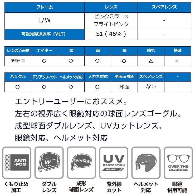 他の画像を見る 23-24 ヘルメット対応 アジアンフィット 2025 SWANS スワンズ 200 スノーボード ゴーグル 200-MDHS MNV レンズ : ゴールドミラー×ブライトピンク スキー 通常販売価格 ¥ 15,400 のところ WEB価格 ¥ 13,200 税込 会員特別価格 ¥ 12,540 税込 在庫切れ 詳細を見る お気に入りに登録する