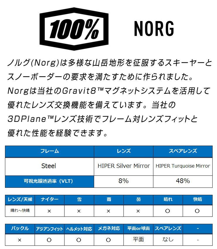 他の画像を見る 24-25 アジアンフィット ヘルメット対応 正規品 2025 100% ワンハンドレッド NORG ノルグ スノーボード ゴーグル Tarheel レンズ : HIPER Blue Mirror スキー 通常販売価格 ¥ 38,500 のところ WEB価格 ¥ 38,500 税込 会員特別価格 ¥ 36,575 税込 在庫切れ 詳細を見る お気に入りに登録する