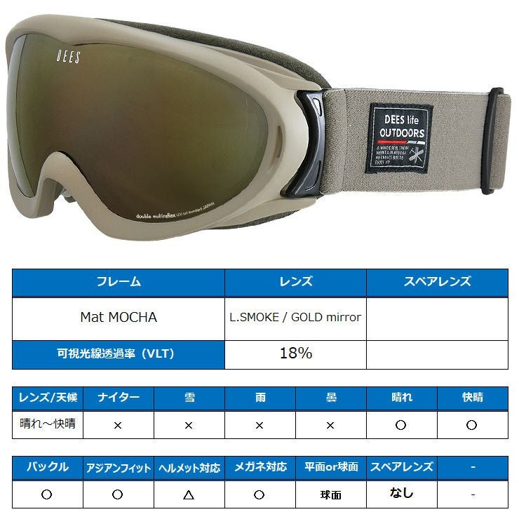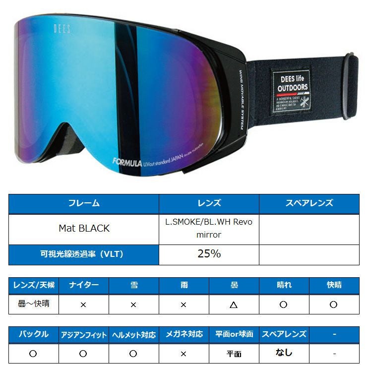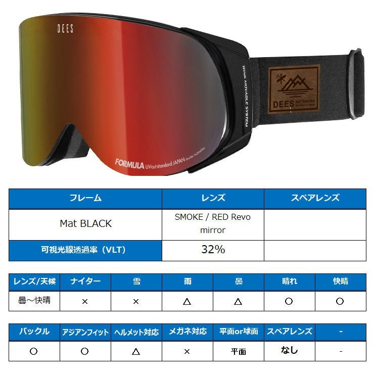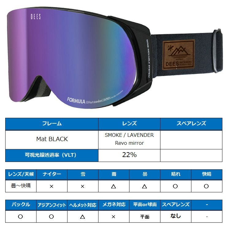 他の画像を見る スノーボードゴーグル アジアンフィット スノーボード ゴーグル DEES ディーズ FORMULA フォーミュラ Mat BLACK レンズ:SMOKE / LAVENDER Revo mirror スキー お買い得 スノボー 通常販売価格 ¥ 8,250 のところ WEB価格 ¥ 6,589 税込 会員特別価格 ¥ 6,259 税込 在庫切れ 詳細を見る お気に入りに登録する