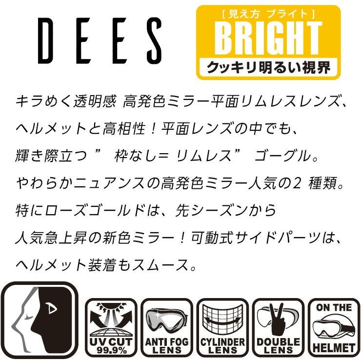 他の画像を見る スノーボードゴーグル アジアンフィット スノーボード ゴーグル DEES ディーズ FORMULA フォーミュラ Mat BLACK レンズ:L.SMOKE/ROSE.G Revo mirror スキー お買い得 スノボー DYG-2374 【acc-cp-09】 通常販売価格 ¥ 8,250 のところ WEB価格 ¥ 2,189 税込 会員特別価格 ¥ 2,079 税込 在庫切れ 詳細を見る お気に入りに登録する