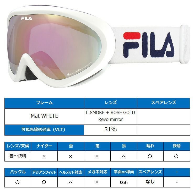 他の画像を見る アジアンフィット FILA フィラ スノーボード ゴーグル FG1901J-2 [Mat WHITE] L.SMOKE + ROSE GOLD Revo mirror ゴーグル 球面 スキー ゴーグル 通常販売価格 ¥ 8,250 のところ WEB価格 ¥ 6,589 税込 会員特別価格 ¥ 6,259 税込 在庫切れ 詳細を見る お気に入りに登録する