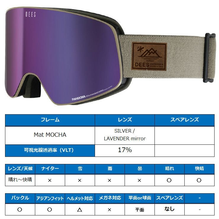 他の画像を見る スノーボードゴーグル アジアンフィット スノーボード ゴーグル DEES ディーズ PANDORA パンドラ DEG-2478-2 Mat MOCHA レンズ:SILVER / LAVENDER mirror スキー スノボー 通常販売価格 ¥ 8,250 のところ WEB価格 ¥ 6,589 税込 会員特別価格 ¥ 6,259 税込 在庫切れ 詳細を見る お気に入りに登録する
