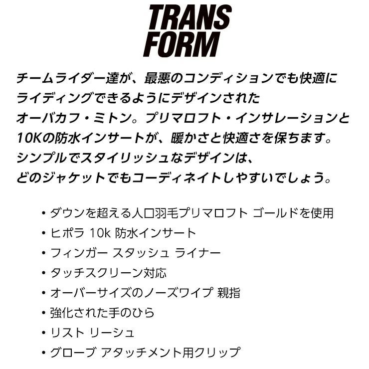 【ポイントUP祭!!】22-23 TRANSFORM トランスフォーム THE TEAM Throwback チーム スノーボードグローブ ミトン スキーグローブ【acc-cp-09】