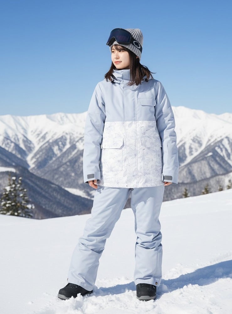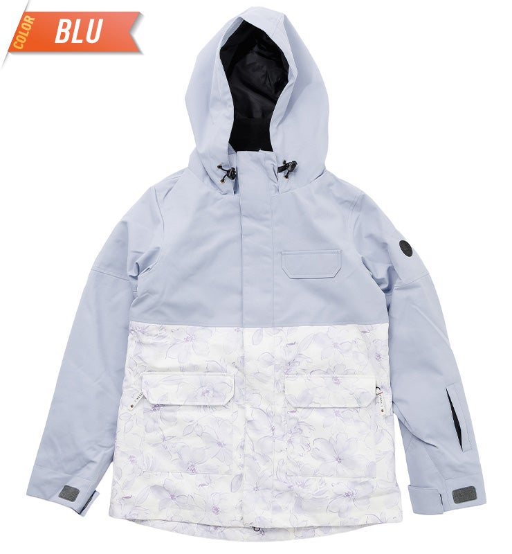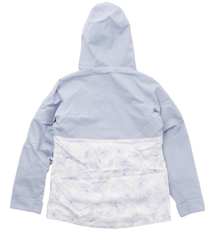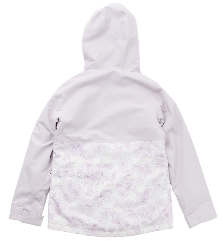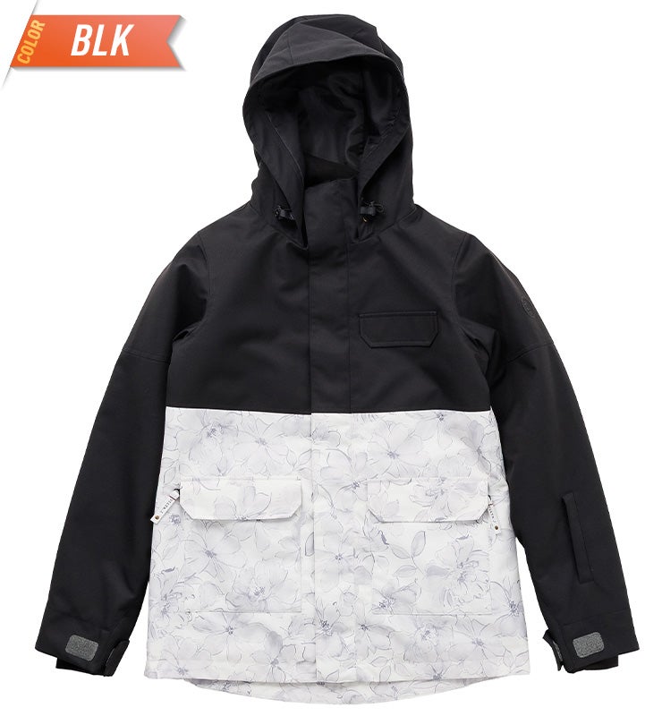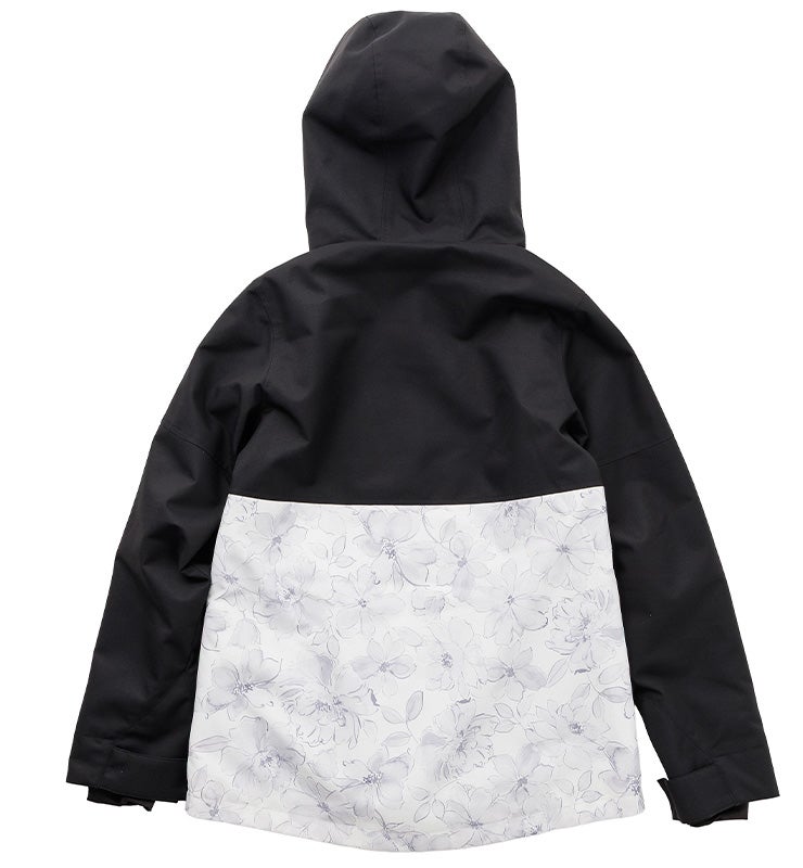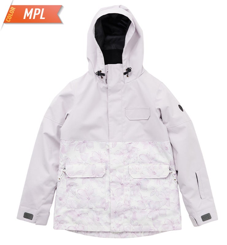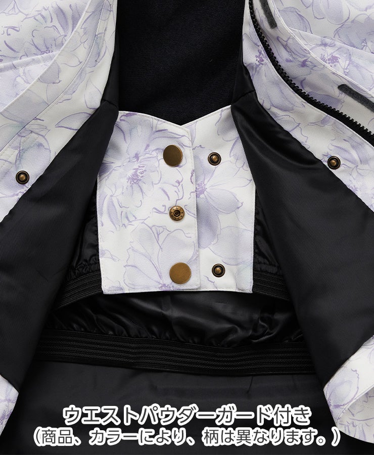 単色からの淡い花柄が女性らしいデザインで防寒対策も安心なスノーボ-ドジャケットです。