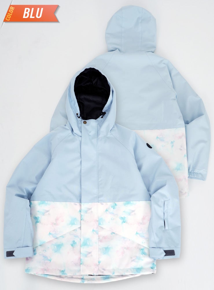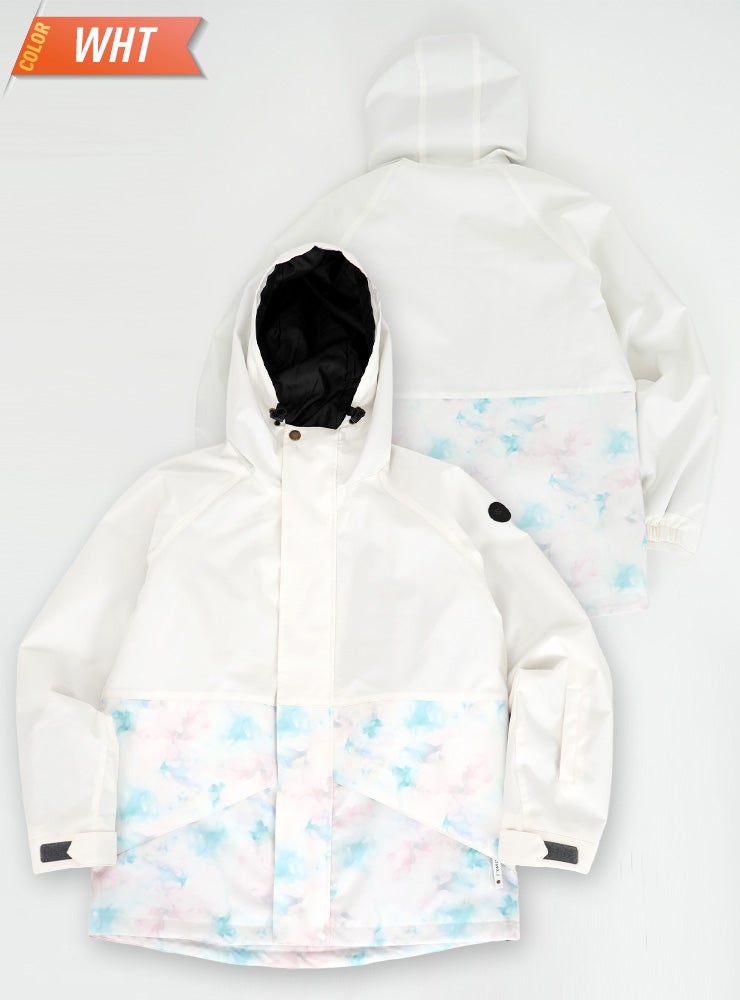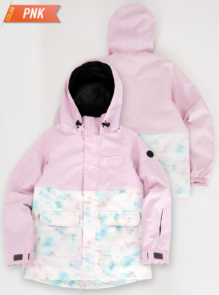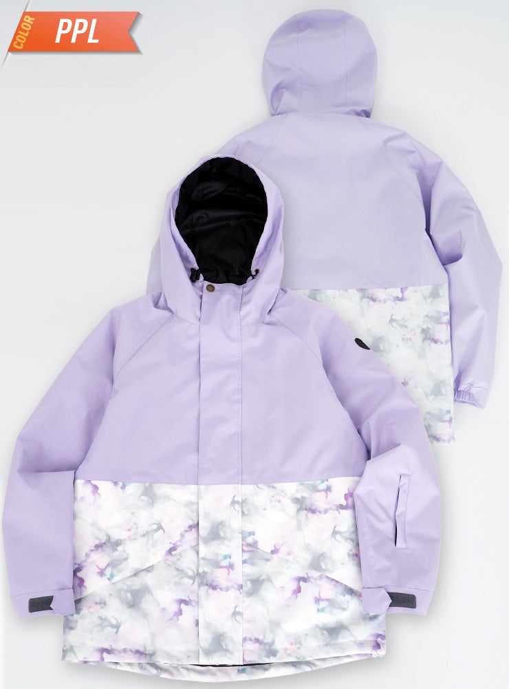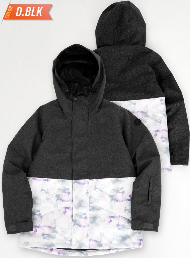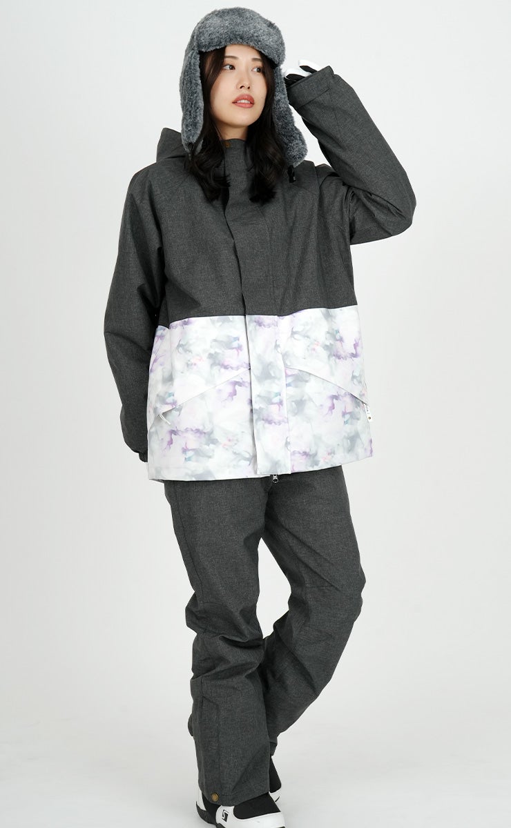 単色からの淡い花柄が女性らしいデザインで防寒対策も安心なスノーボ-ドジャケットです。