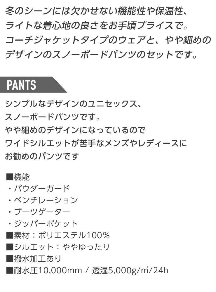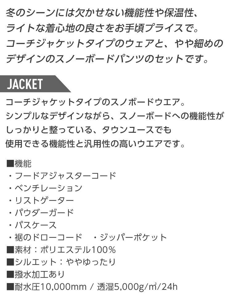 他の画像を見る 上下セット スノーボードウェア メンズ レディース お買い得 【ポイントUP祭!!】スノーボードウェア 上下セット JOYRIDE ジョイライド コーチ ジャケット パンツ セット ユニセックス スノボー お買い得 大人ボードウェア 通常販売価格 ¥ 16,390 のところ WEB価格 ¥ 16,390 税込 会員特別価格 ¥ 15,570 税込 カートに入れる お気に入りに登録する