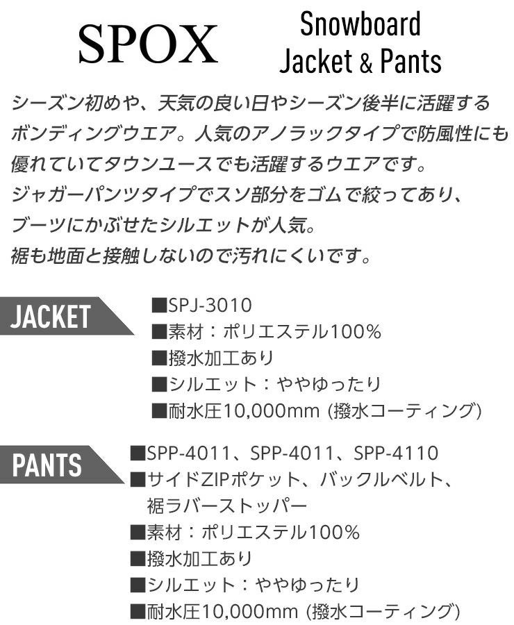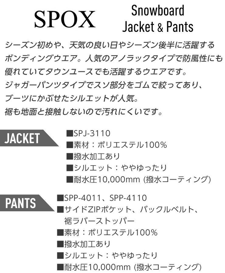 他の画像を見る スノーボードウェア メンズ レディース お買い得 ライトウェア 【ポイントUP祭!!】スノーボードウェア 上下セット SPOX スポックス ボンディング 防水 フーディパーカ ジャケット パンツ セット ユニセックス スノボー お買い得 大人ボードウェア 通常販売価格 ¥ 26,400 のところ WEB価格 ¥ 8,990 税込 会員特別価格 ¥ 8,540 税込 カートに入れる お気に入りに登録する
