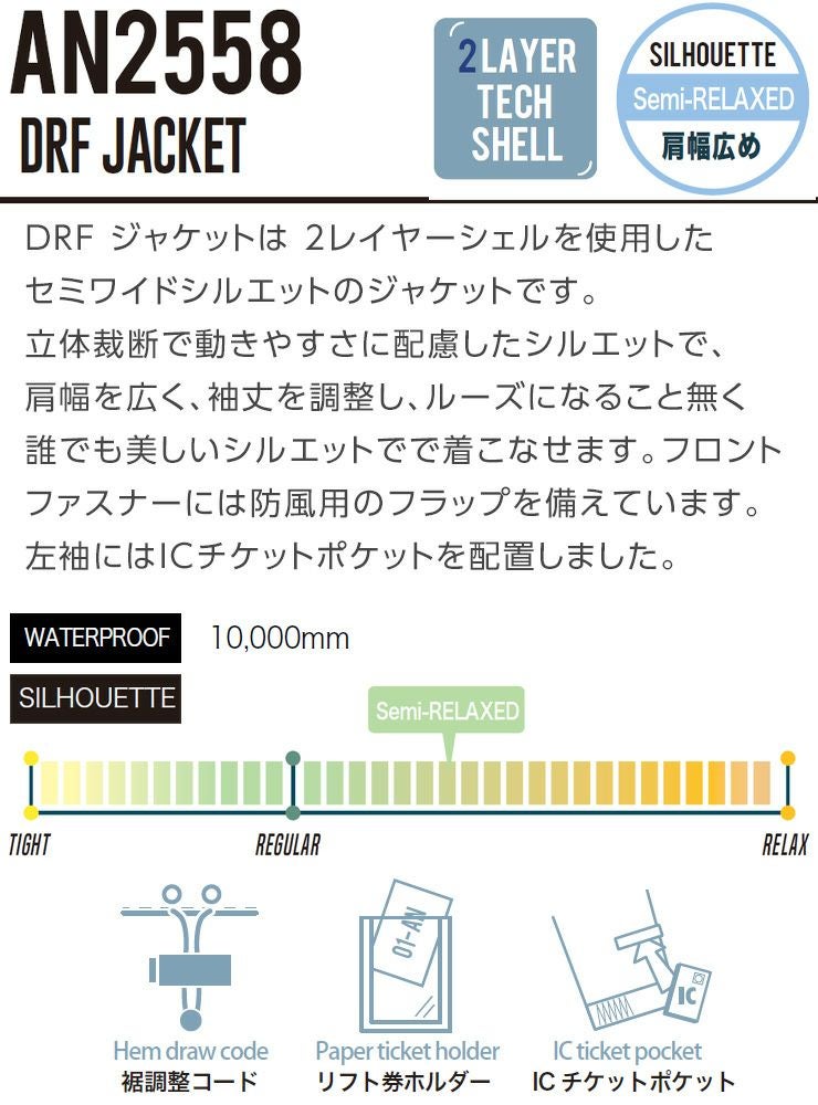 他の画像を見る 正規品 25-26 動きやすい立体裁断のワイドジャケット 【超セール祭!!】2026 ANTHEM アンセム DRF JACKET DRFジャケット スノーボード スキー ウェア 大人ボードウェア 通常販売価格 ¥ 20,900 のところ WEB価格 ¥ 15,675 税込 会員特別価格 ¥ 14,890 税込 カートに入れる お気に入りに登録する