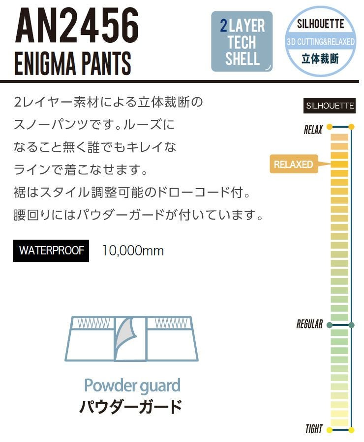 他の画像を見る 2025 撥水軽量パンツ 24-25 ANTHEM アンセム ENIGMA PANTS エニグマパンツ スノーボード スキー ウェア 通常販売価格 ¥ 20,900 のところ WEB価格 ¥ 18,810 税込 会員特別価格 ¥ 17,869 税込 在庫切れ カートに入れる お気に入りに登録する