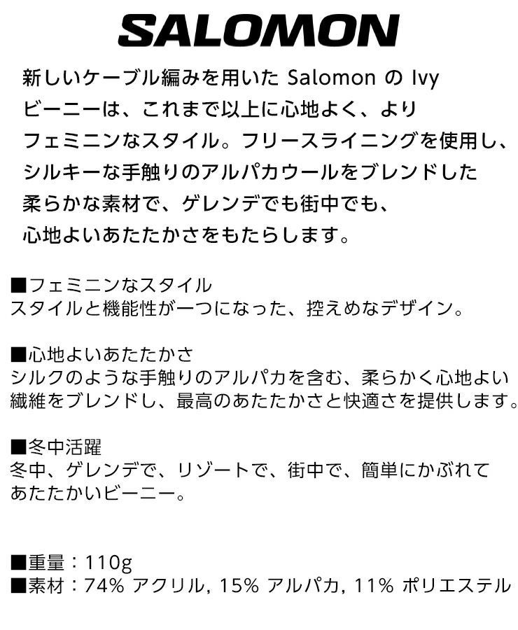 他の画像を見る 2025 正規品 デイリーユース 正規品 24-25 SALOMON サロモン IVY BEANIE アイビー ビーニー ニット帽 スノーボード LC2302800008 通常販売価格 ¥ 4,950 のところ WEB価格 ¥ 3,465 税込 会員特別価格 ¥ 3,291 税込 在庫切れ カートに入れる お気に入りに登録する