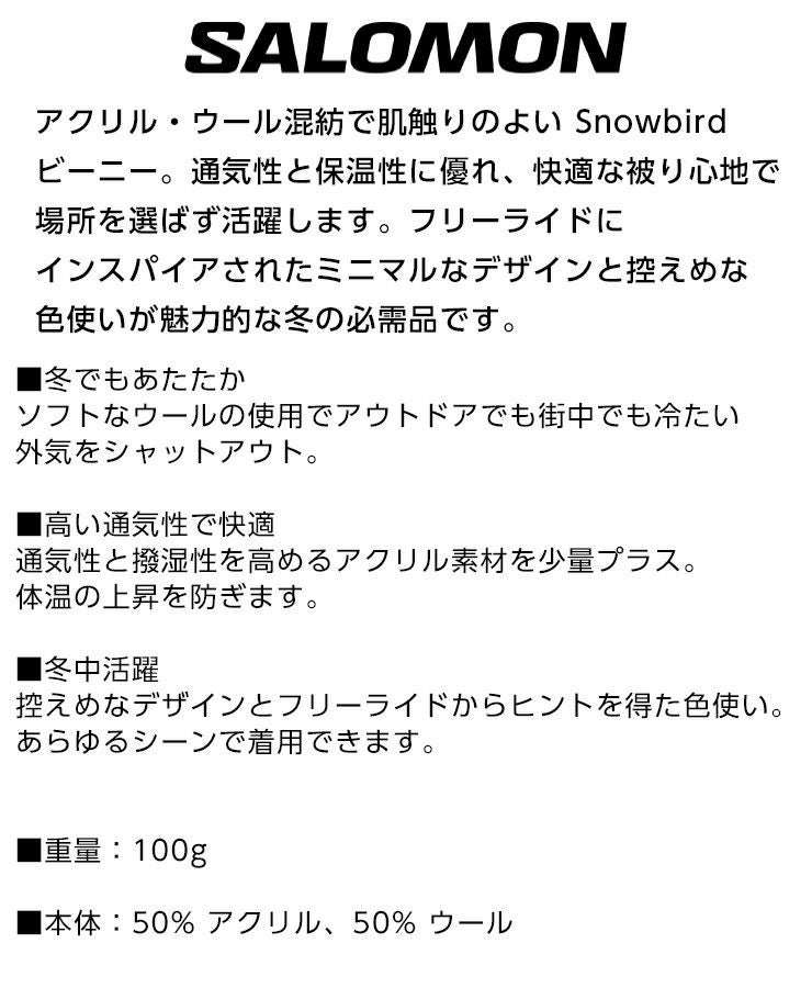 他の画像を見る 2025 正規品 デイリーユース 正規品 24-25 SALOMON サロモン SNOWBIRD BEANIE スノーバード ビーニー ニット帽 スノーボード LC2303200010 通常販売価格 ¥ 4,950 のところ WEB価格 ¥ 3,465 税込 会員特別価格 ¥ 3,291 税込 在庫切れ カートに入れる お気に入りに登録する