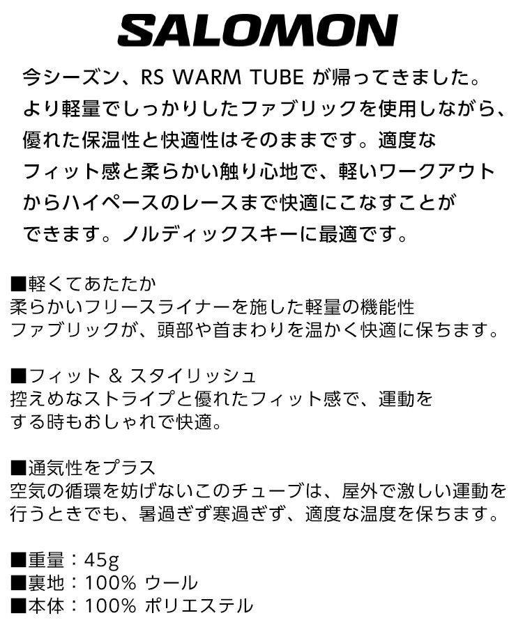 他の画像を見る 2025 正規品 正規品 24-25 SALOMON サロモン RS WARM TUBE ウォームチューブ 防寒 ネックウォーマー マスク スノーボード LC2122400010 通常販売価格 ¥ 3,850 のところ WEB価格 ¥ 2,695 税込 会員特別価格 ¥ 2,559 税込 在庫切れ カートに入れる お気に入りに登録する