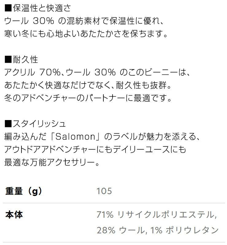 他の画像を見る 正規品 25-26 デイリーユースにも 2026 SALOMON サロモン HERMITAGE BEANIE ヘリテイジ ビーニー ニット帽 スノーボード スキー 通常販売価格 ¥ 3,850 のところ WEB価格 ¥ 3,465 税込 会員特別価格 ¥ 3,291 税込 在庫切れ カートに入れる お気に入りに登録する