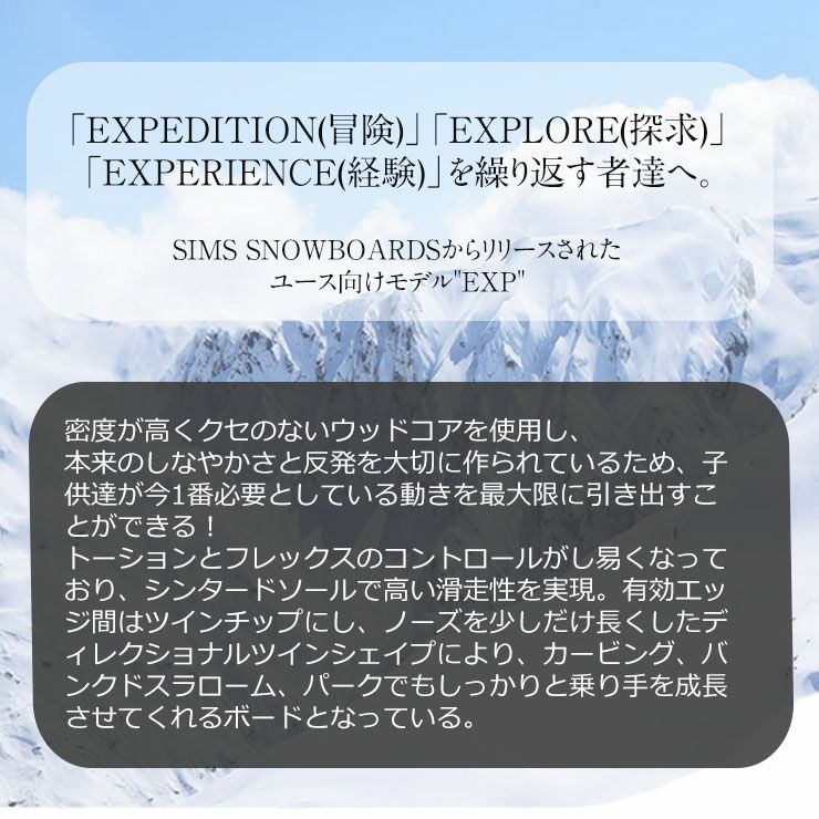 SIMS SNOWBOARDSからリリースされたユース向けモデル'EXP'。