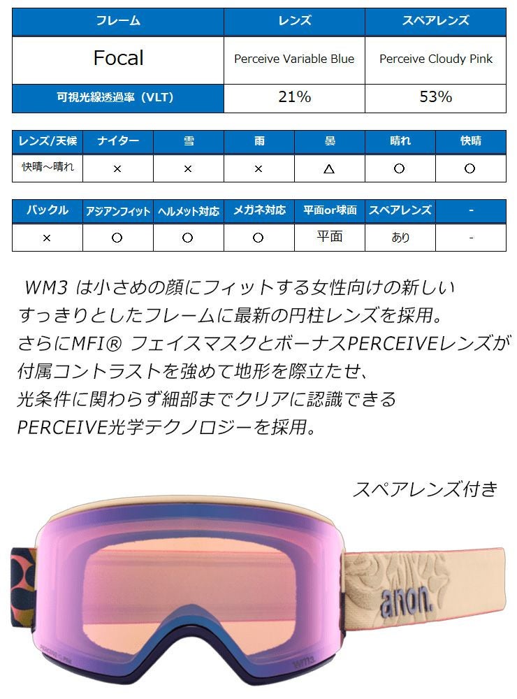 2025 anon アノン スノーボード ゴーグル WM3 Low Bridge カラー: Focal レンズ: Perceive Variable Blue スキー マグネット式