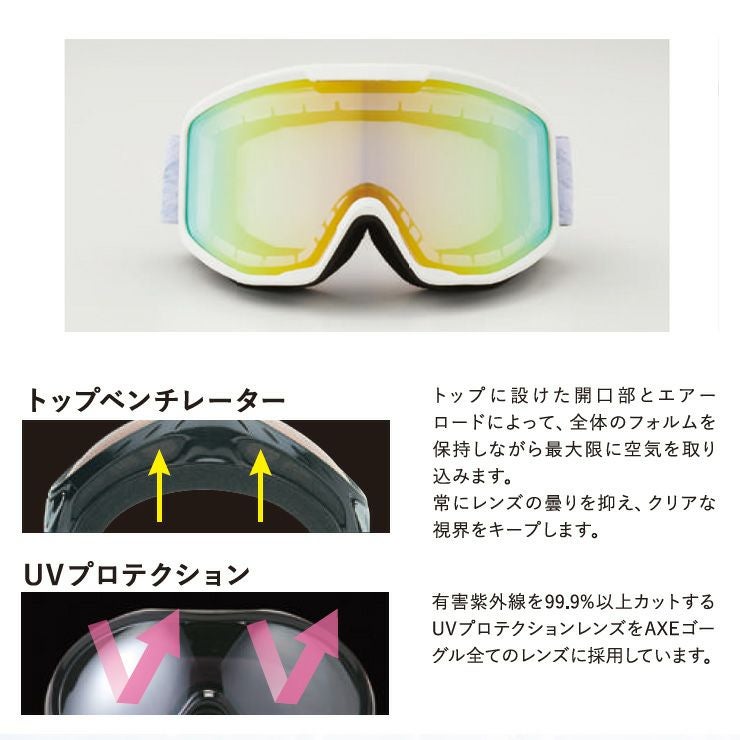 AXE アックス スノーボード ゴーグル スキー AX800-WCM マットホワイト レンズ:ライトピンクベース/ゴールドミラー