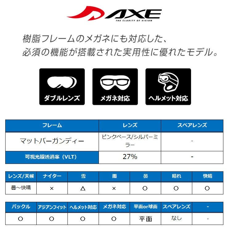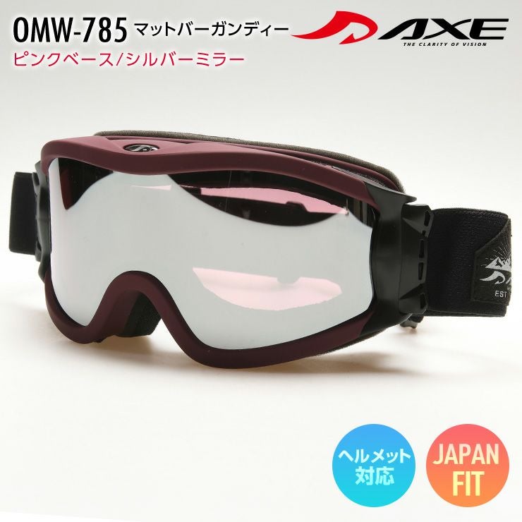 AXE アックス スノーボード ゴーグル スキー OMW-785 マットバーガンディー レンズ:ピンクベース/シルバーミラー