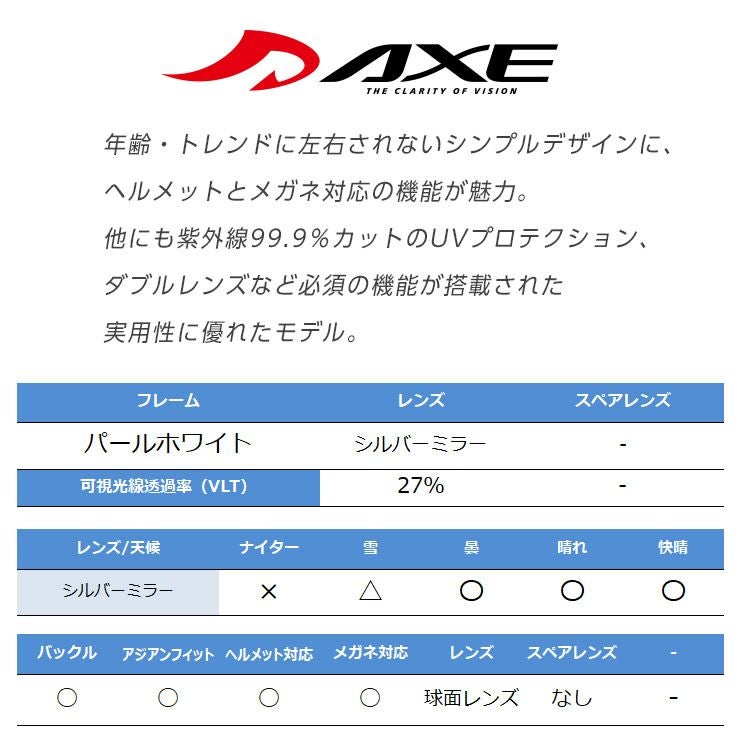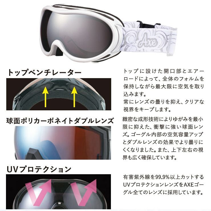AXE アックス AX 595-WMD パールホワイト シルバーミラー ゴーグル スノーボード メガネ対応 ヘルメット対応
